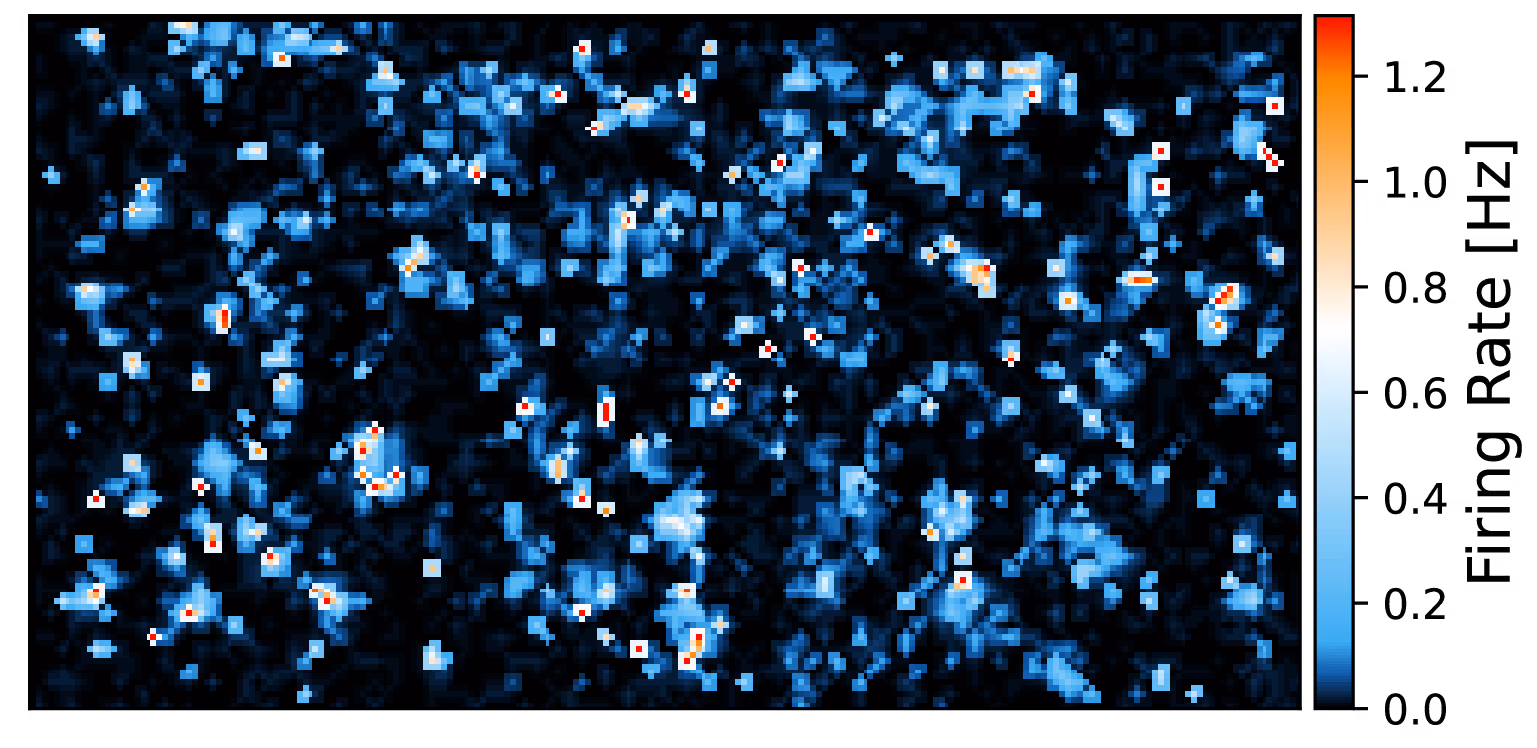 Heatmap of firing rate, illustrating overall neural activity across the chip.