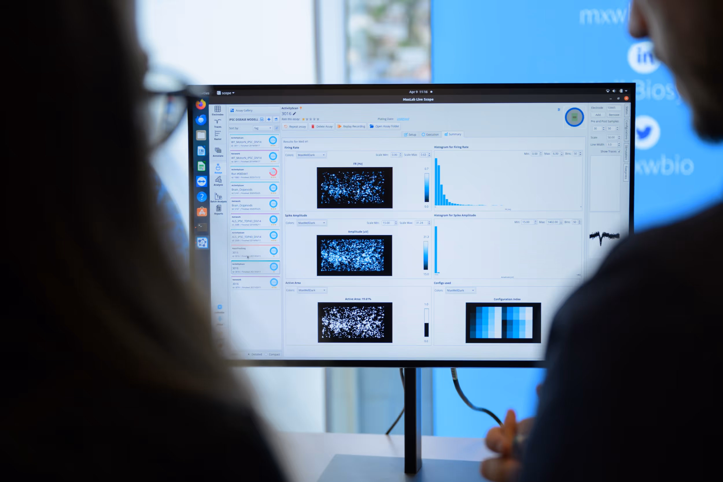 Built to streamline high-throughput workflows, the MaxLab Live large-scale data handling suite simplifies the organization, analysis, and sharing of HD-MEA data. Whether generating reports, sharing findings, or preparing publication-ready figures, MaxLab Live tools ensure that the results are accessible and presentation-ready in just a few clicks, and available in multiple formats for seamless collaboration and communication.