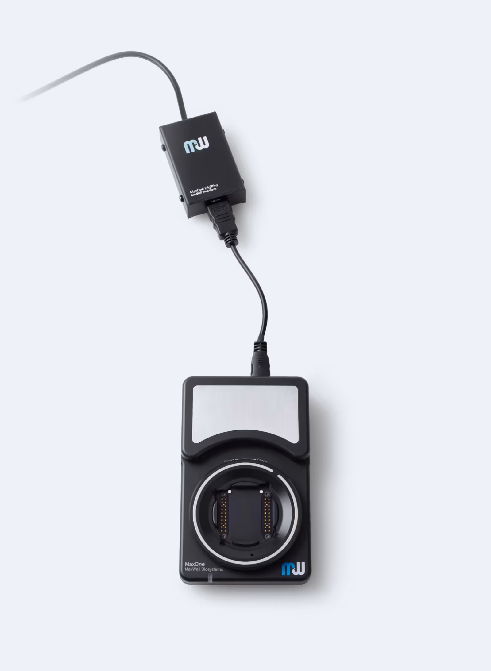 Capture cellular signals with unmatched spatial and temporal resolution, down to single-cell and even sub-cellular detail. MaxOne features 26,400 high-density electrodes at 3,265 electrodes/mm2 with a 20 kHz sampling rate. MaxOne enables detailed insights from individual cells down to axonal signal propagation, ensuring exceptional data quality for your research.
